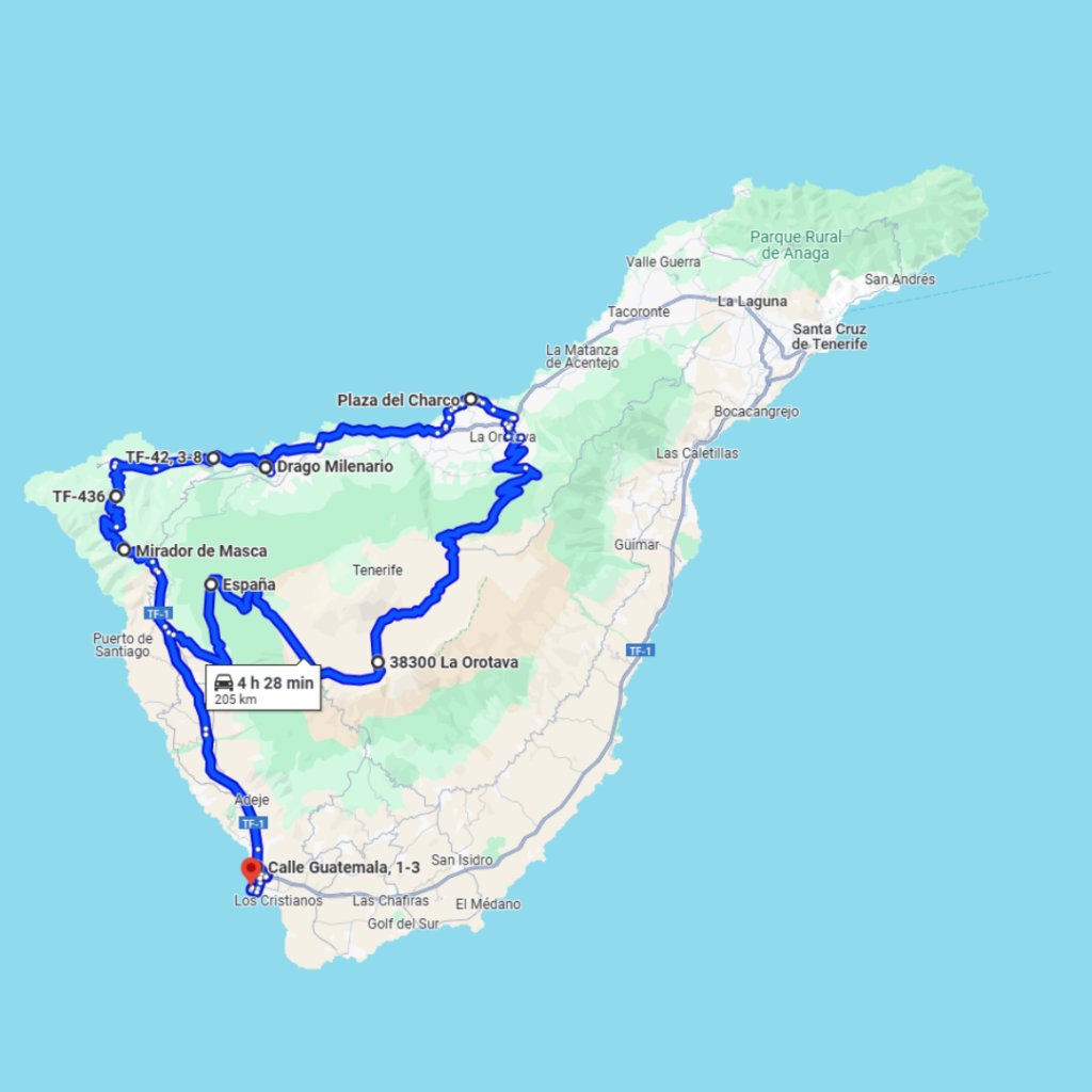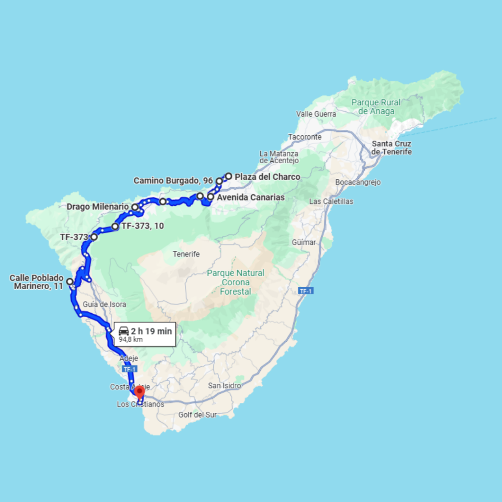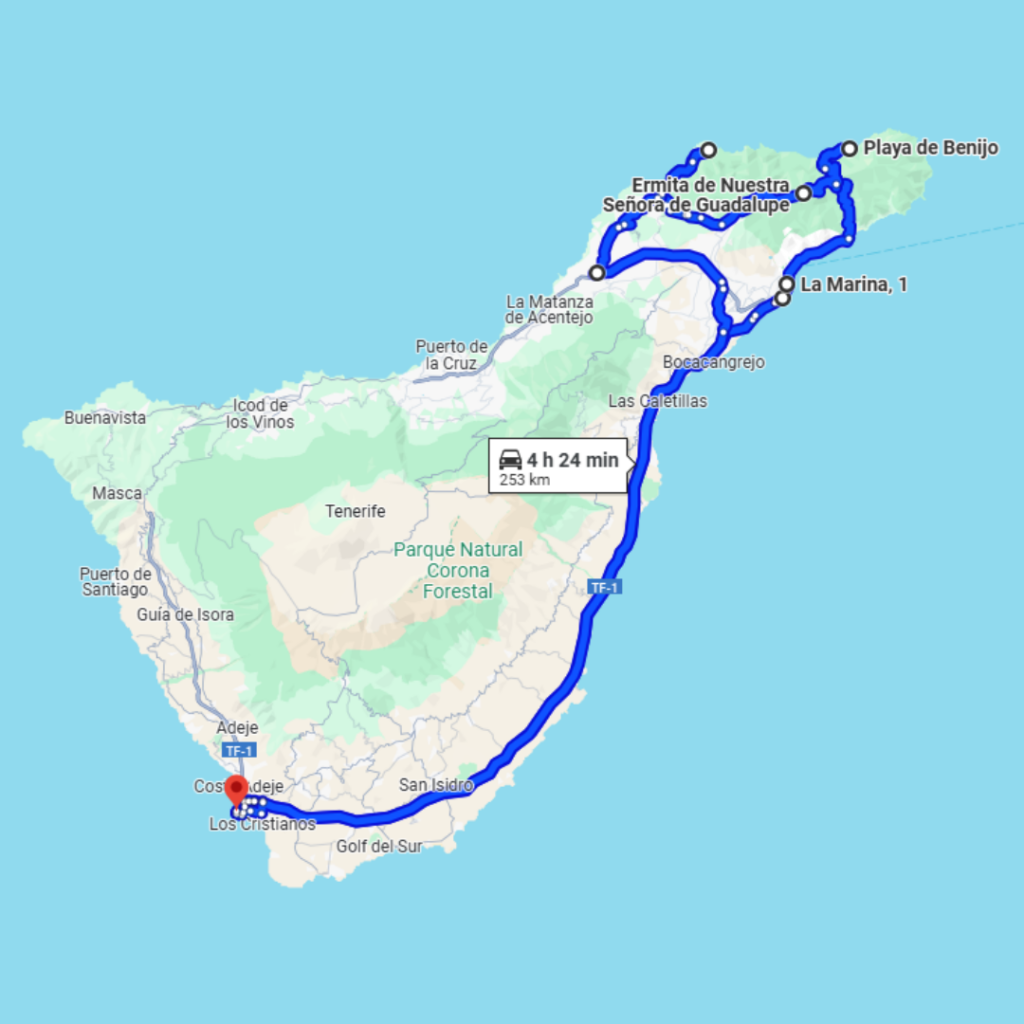 No. No está permitido conducir por pistas y no está permitido sacar el vehículo de Tenerife bajo ninguna circunstancia.